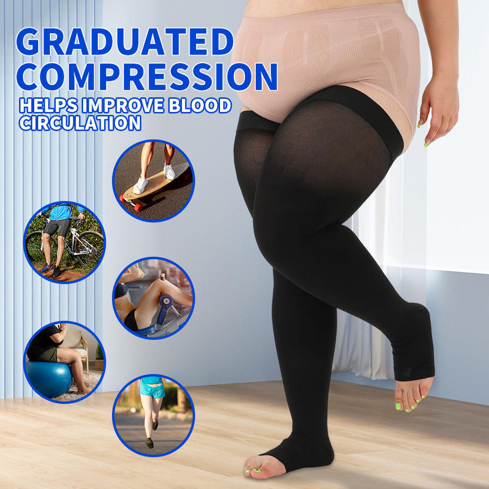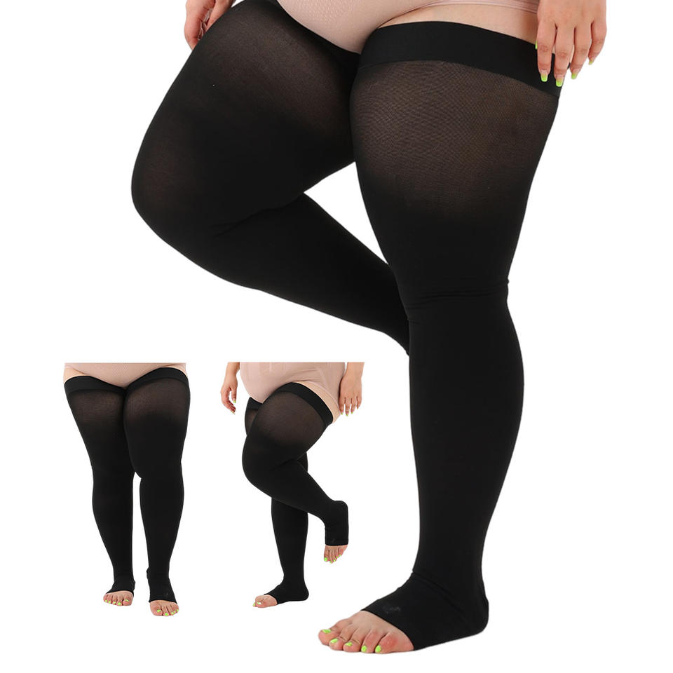 Chaussettes de compression montantes à bout ouvert pour femmes, classe 2, 20-30 mmHg, antidérapantes, qualité médicale, pour le soulagement des varices et des œdèmes