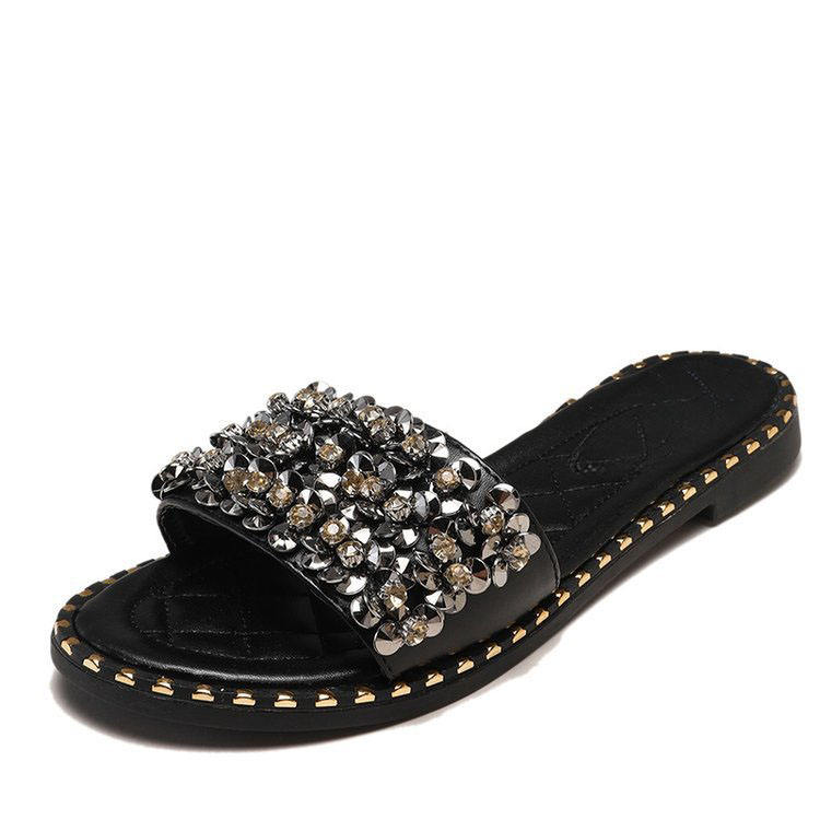 Chaussons plats pour femmes avec strass, de créateur, pour l'extérieur