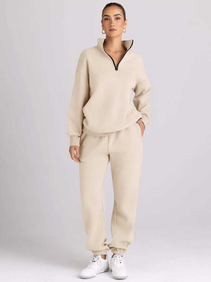 Survêtements d'hiver pour femmes, taille unique, deux pièces, en molleton uni, col rond, sweat-shirts et pantalons de survêtement respirants, 2 pièces, fabriqués au Pakistan