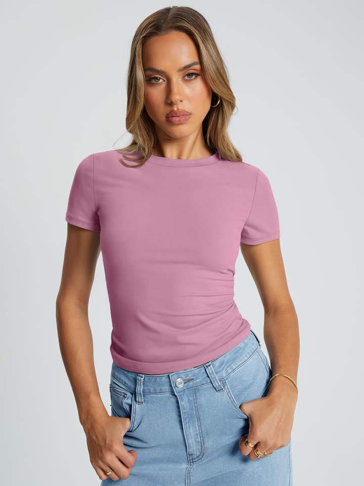 Femmes grande taille Causal Womens Basic Short Sleeve Slim Fit T Shirts Soft Crewneck Crop Tee Summer Cute Gym Fashion Clothes