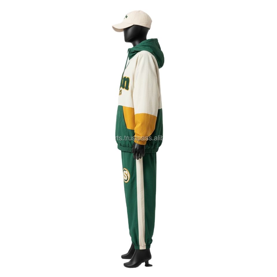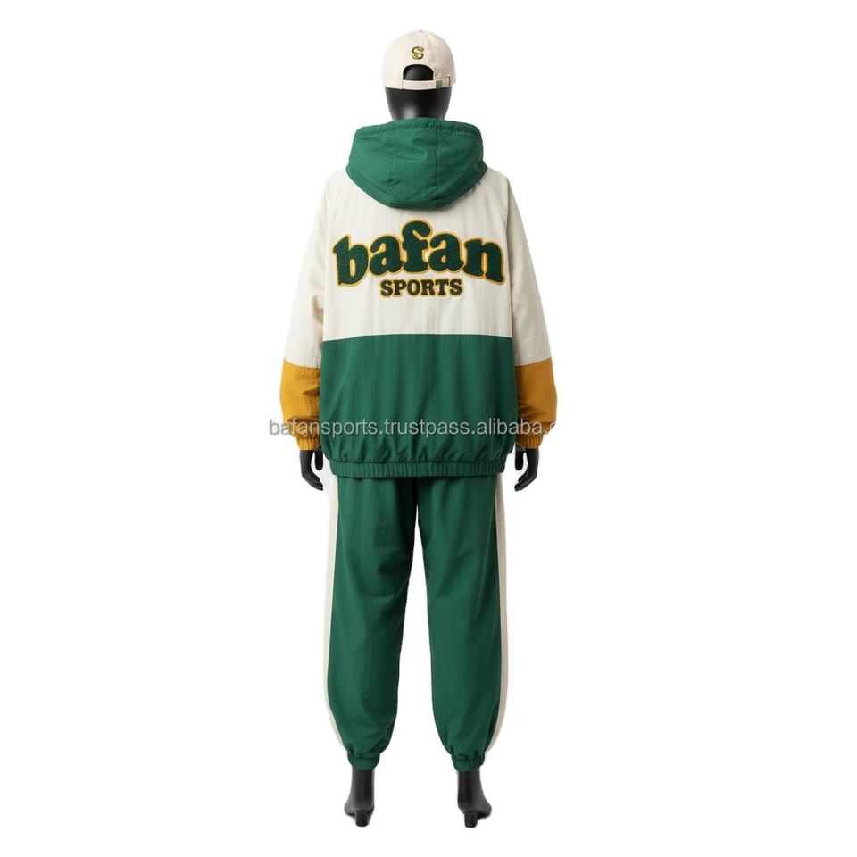 Ensemble de coupe-vent en polyester Ripstop de qualité supérieure 180GSM pour femmes coupe-vent grande taille à blocs de couleurs vert jaune avec logo brodé sur mesure