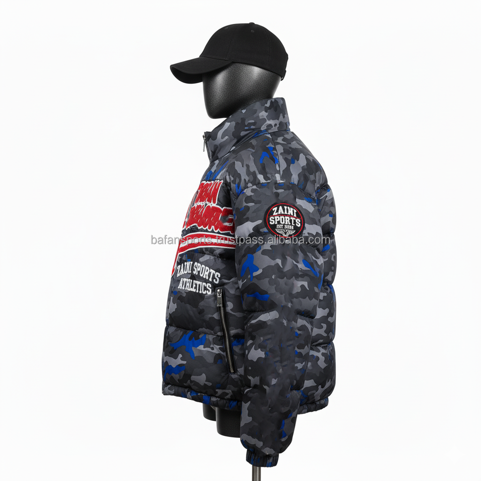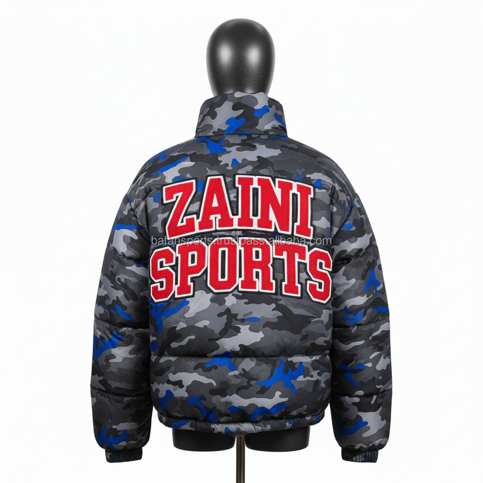 Veste matelassée pour femmes 320GSM Micro Polyester Camo Print Cozy Winter Wear Custom Patch Embroidery Logo Design Women Puffer Jackets