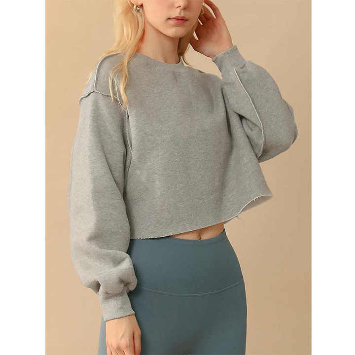Women Pullover Crop Top Hoodies Long Sleeve Fitness Top Casual and Sustainable With Lined Collar for Winter Sportswear