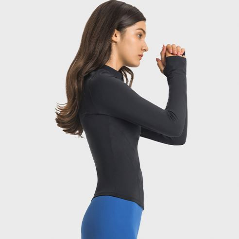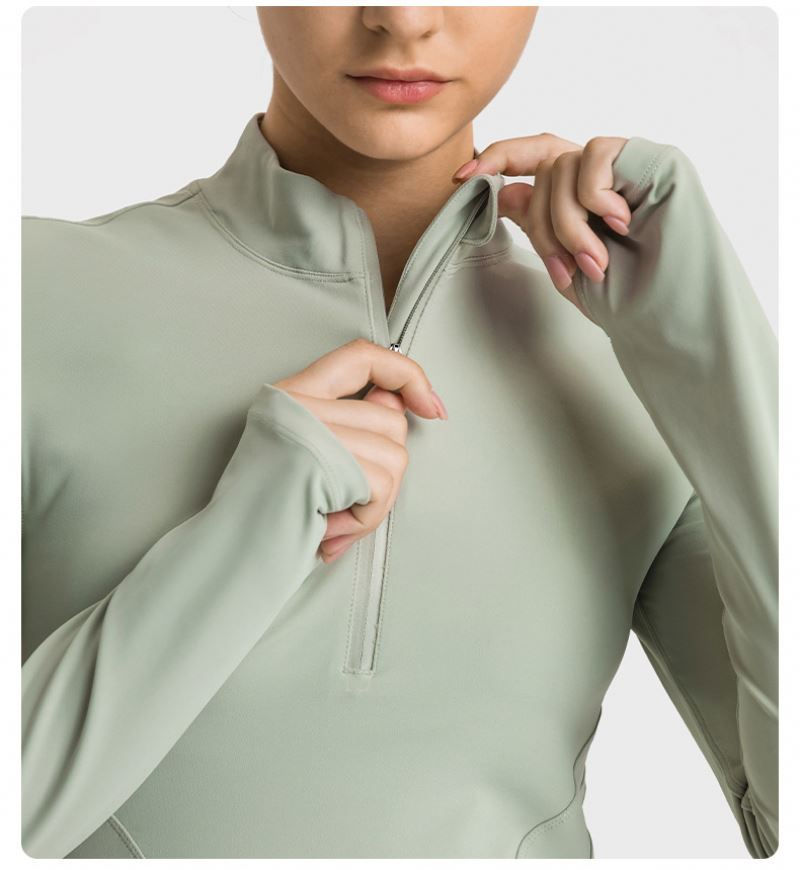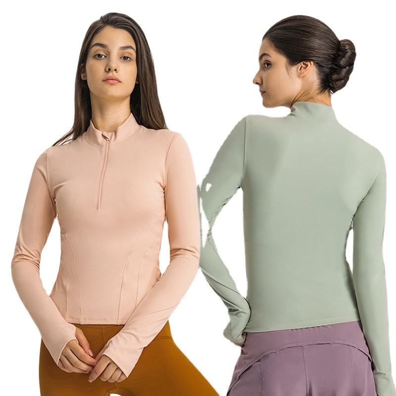 Haut athlétique à fermeture éclair pour femmes, chemise d'entraînement à manches longues et coupe ajustée, séchage rapide, yoga, course à pied, vêtements de sport extensibles, vente en gros