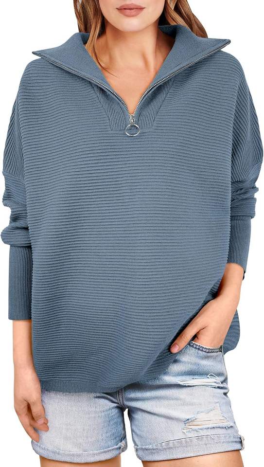 Womens Sweater Half Zip Pullover Soft Knit Loose Fit Long Sleeve Casual Winter Top Custom Wholesale