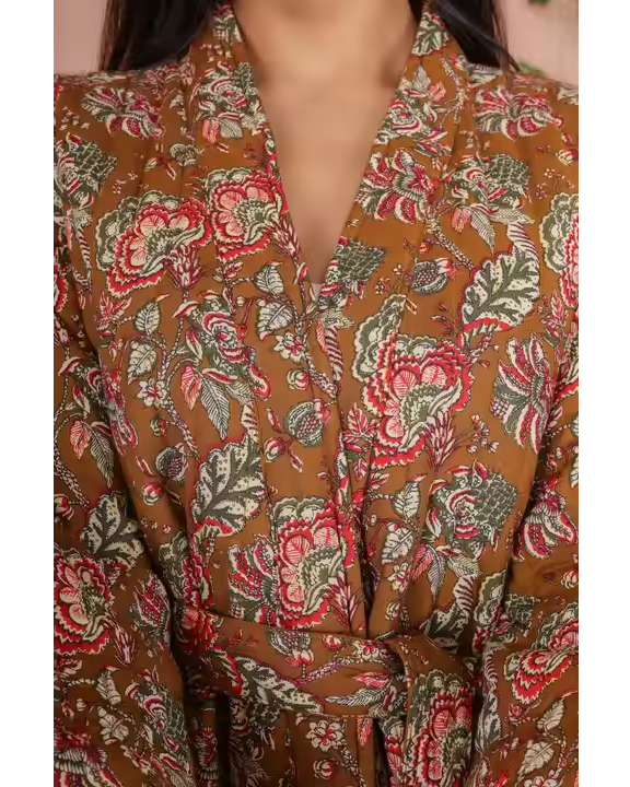 Women Quilted Cotton Kimono Style Bathrobe with Double Sided Print Long Sleeves and Belt Tie Perfect Warm Winter Loungewear