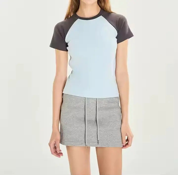 T-shirts raglan pour femmes T-shirts ras-du-cou en tissu léger T-shirts tendance à manches courtes pour femmes T-shirts raglan