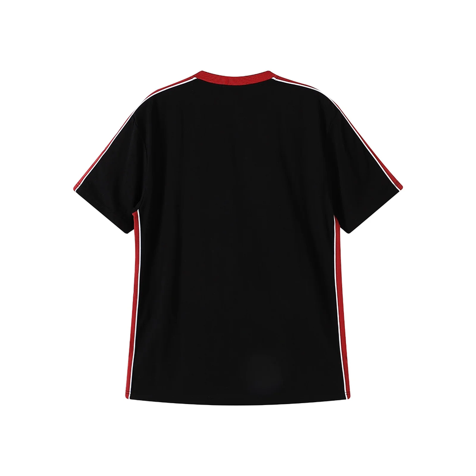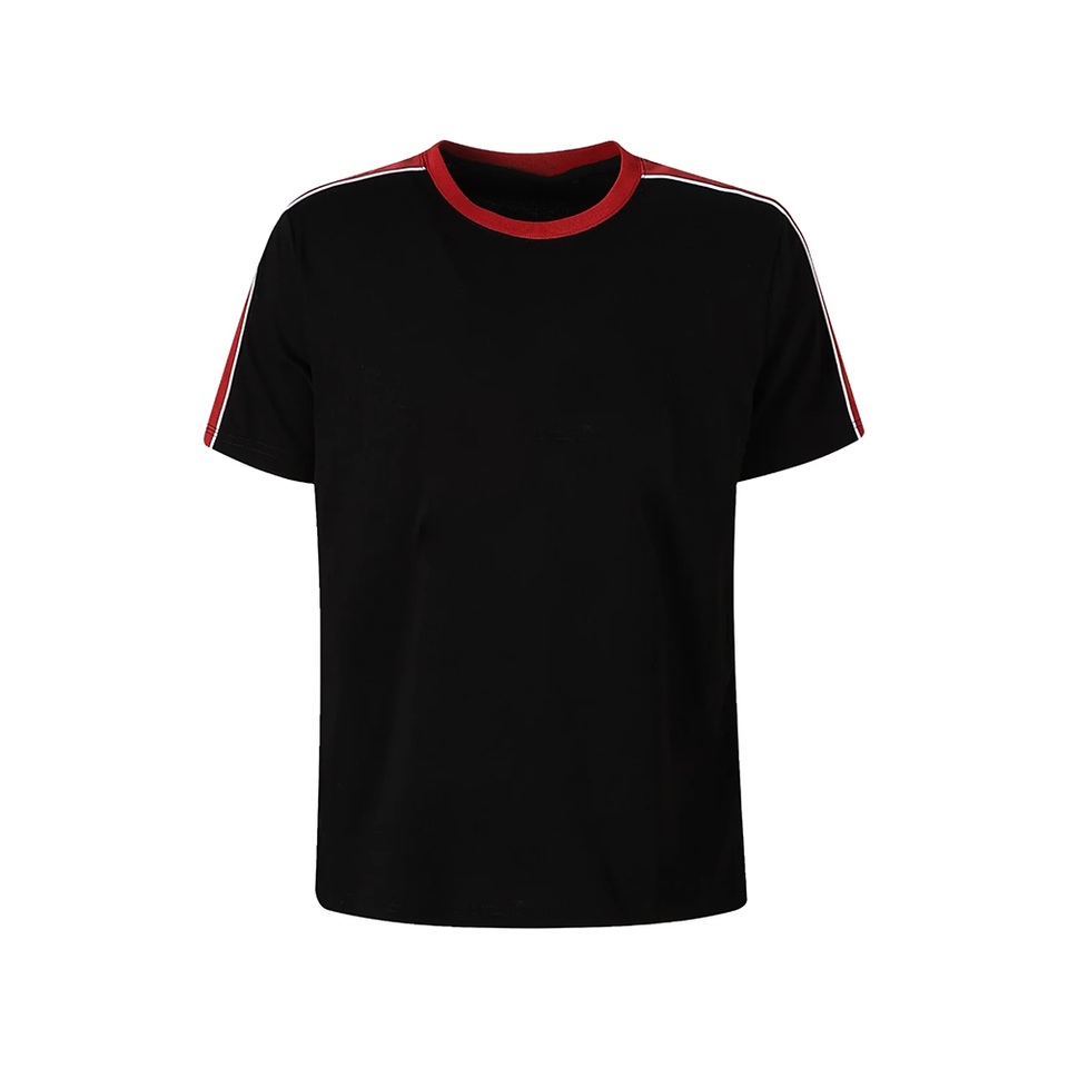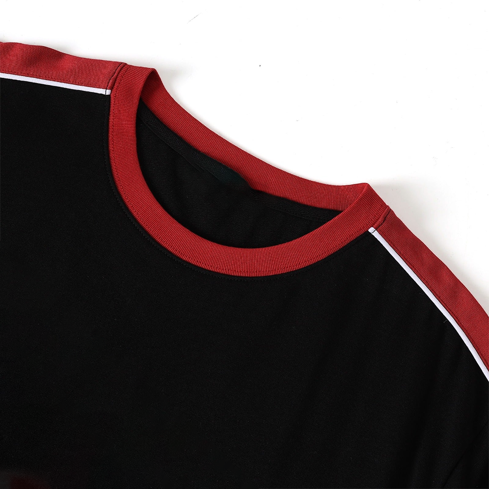 T-shirt homme rouge à col contrastant noir, 100% coton, manches raglan, col rond, manches courtes, coupe classique, logo personnalisé, impression OEM