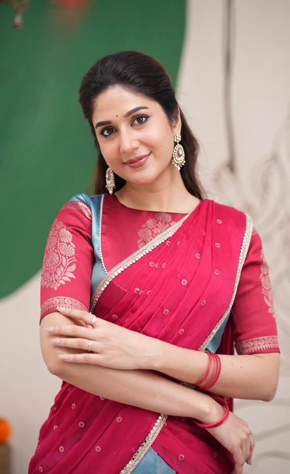 Women Red Silk Lehenga Saree with Embroidered Blouse Party Wear Traditional Outfit