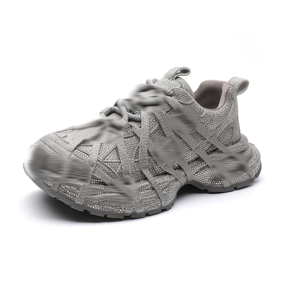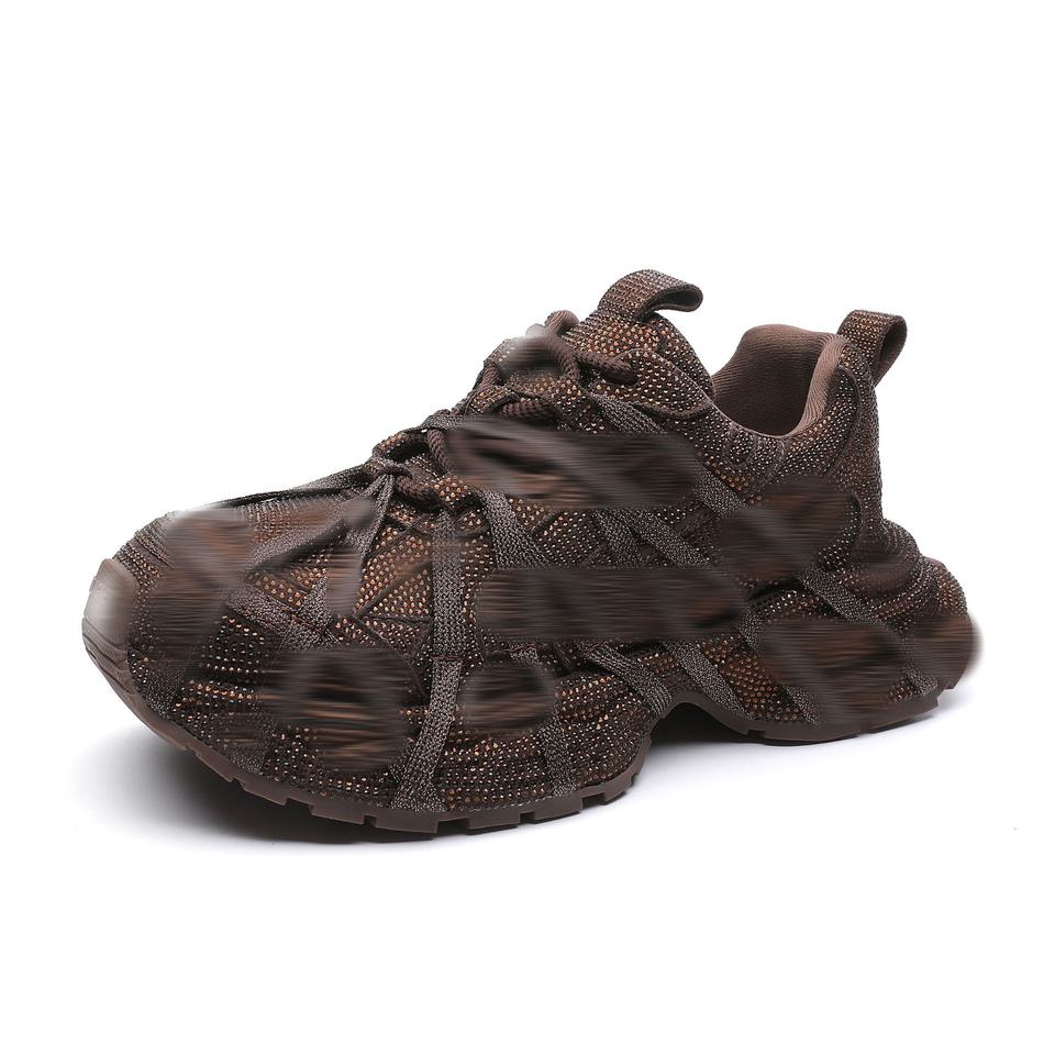 Baskets décontractées à lacets pour femmes, style Dad Shoes, à semelle épaisse et plateforme, ornées de strass, mode 2025