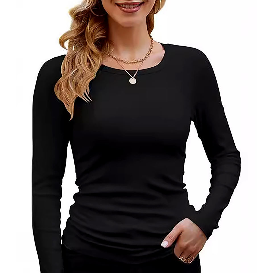 Top côtelé à manches longues pour femmes Slim Fit Crew Neck Knit Stretch Basic Casual Layering T-Shirt Undershirt