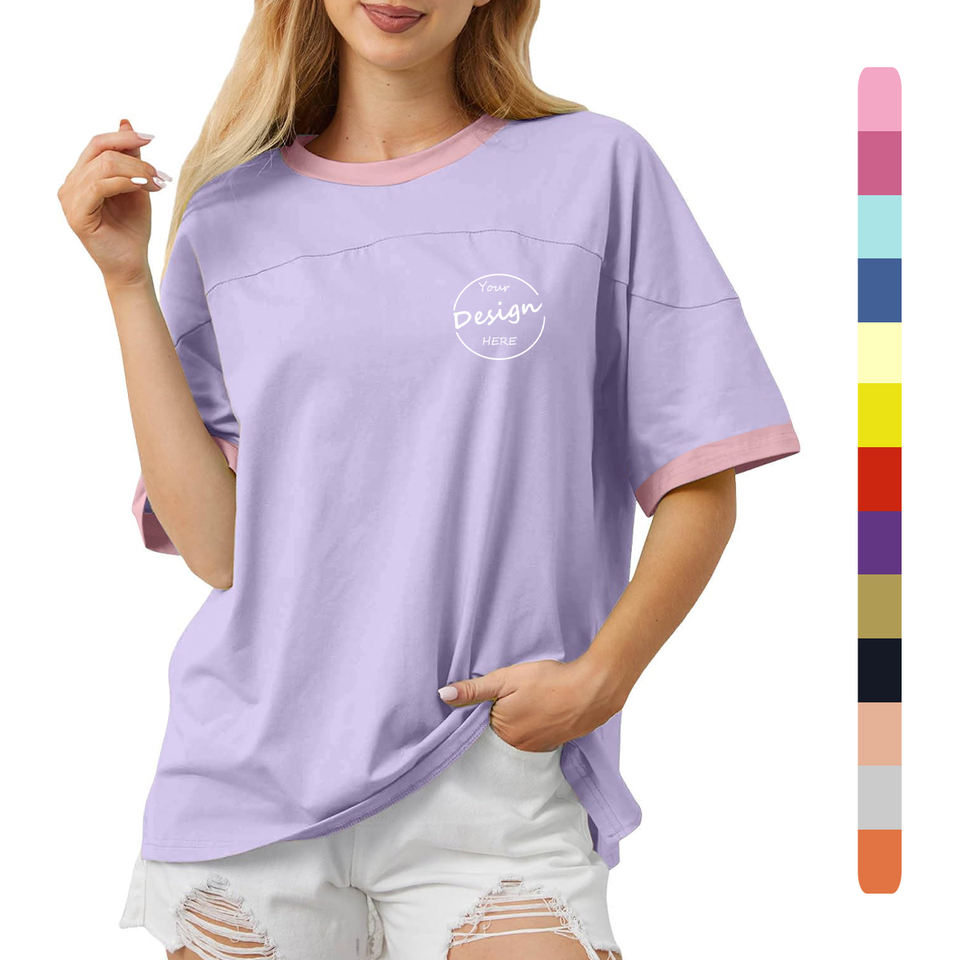 Femme Ringspun Coton Ringer Oversized Fit Soft T-Shirt Short Sleeve Custom Logo Design Breathable Ringer Tshirt Unisex