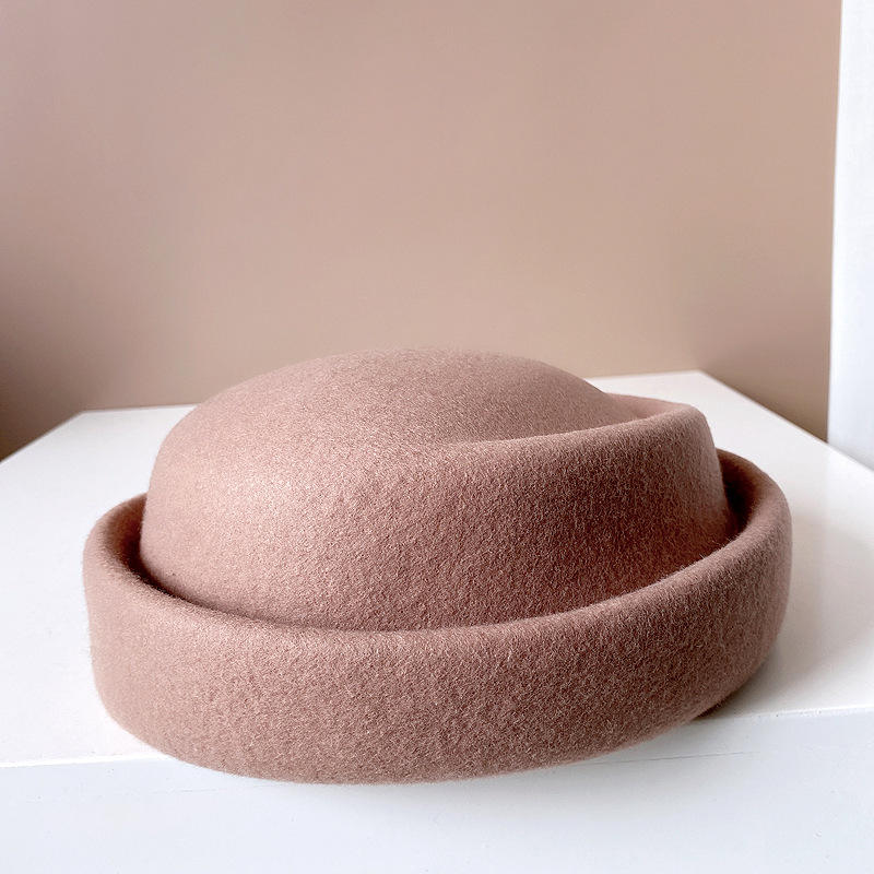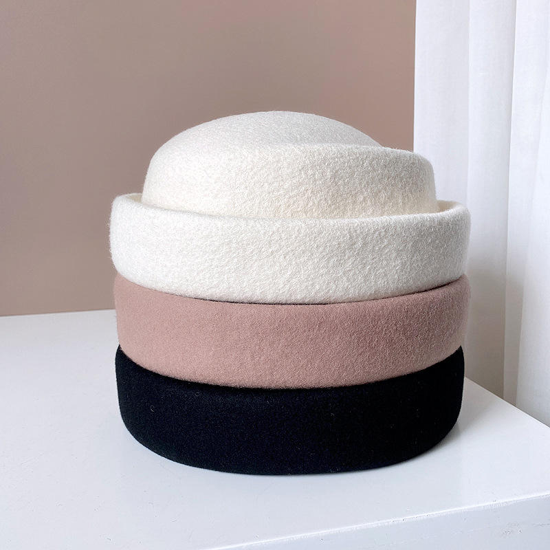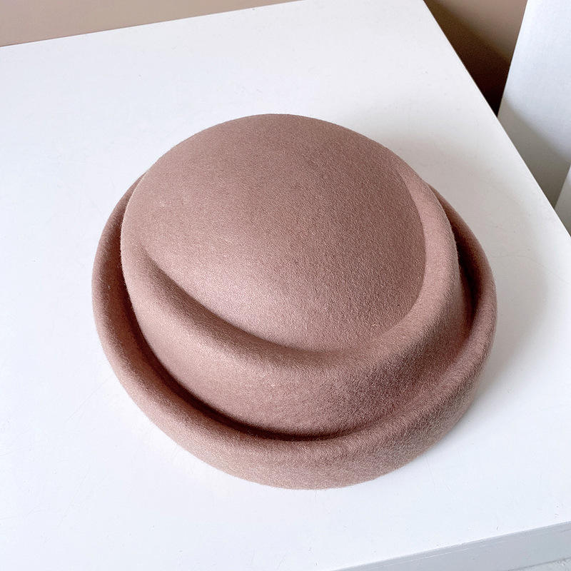 Chapeau de peintre élégant pour femme en feutre de laine, à dessus rond concave, style pillbox, tendance