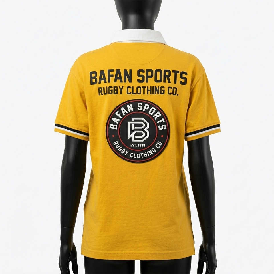 T-shirt de rugby pour femmes, 220 GSM, coton et polyester, maillot de sport jaune, logo imprimé, t-shirt de rugby personnalisé pour femmes, coton