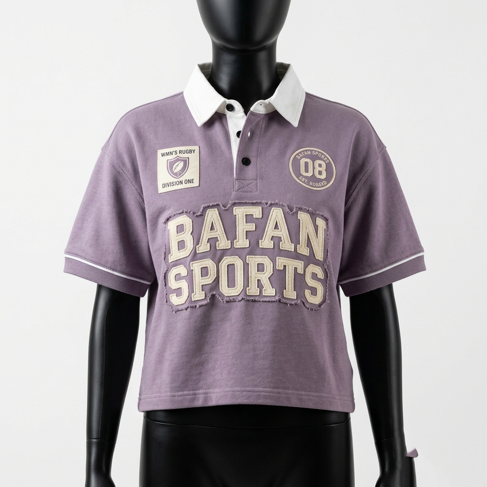 T-shirt de rugby pour femme en coton et polyester 220 GSM, maillot de rugby avec empiècements couleur crème pêche et logo brodé, chemise de rugby pour femme en coton