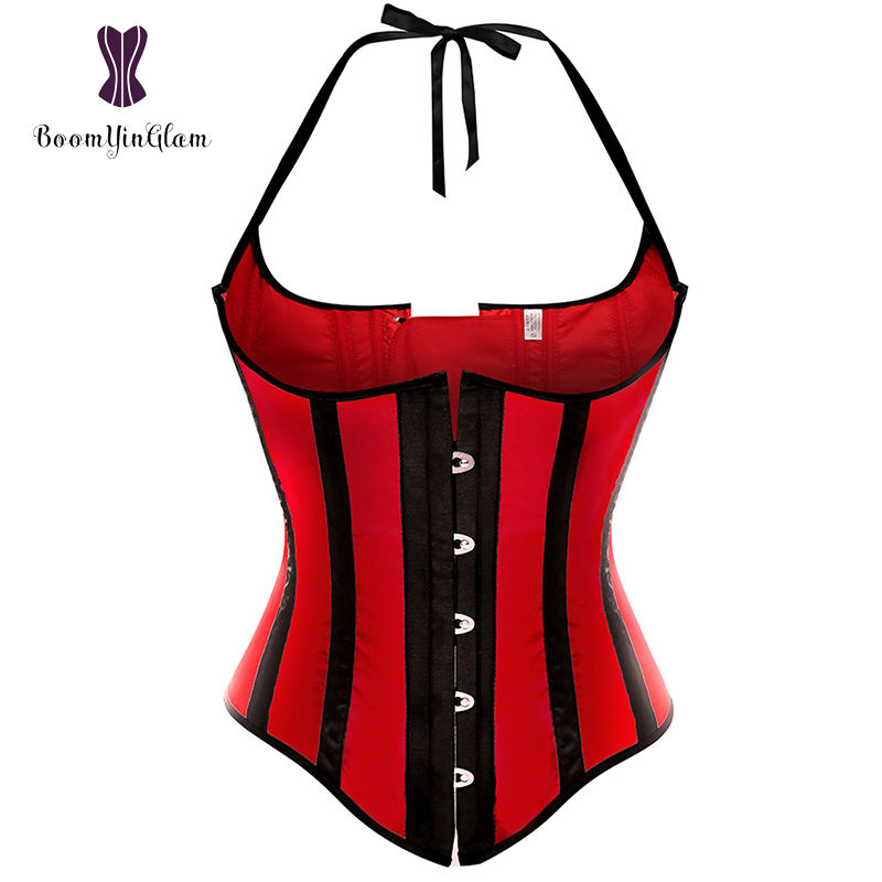 Corset Sexy à rayures pour femme, Bustier dos nu, grandes tailles, avec String G, ceinture abdominale