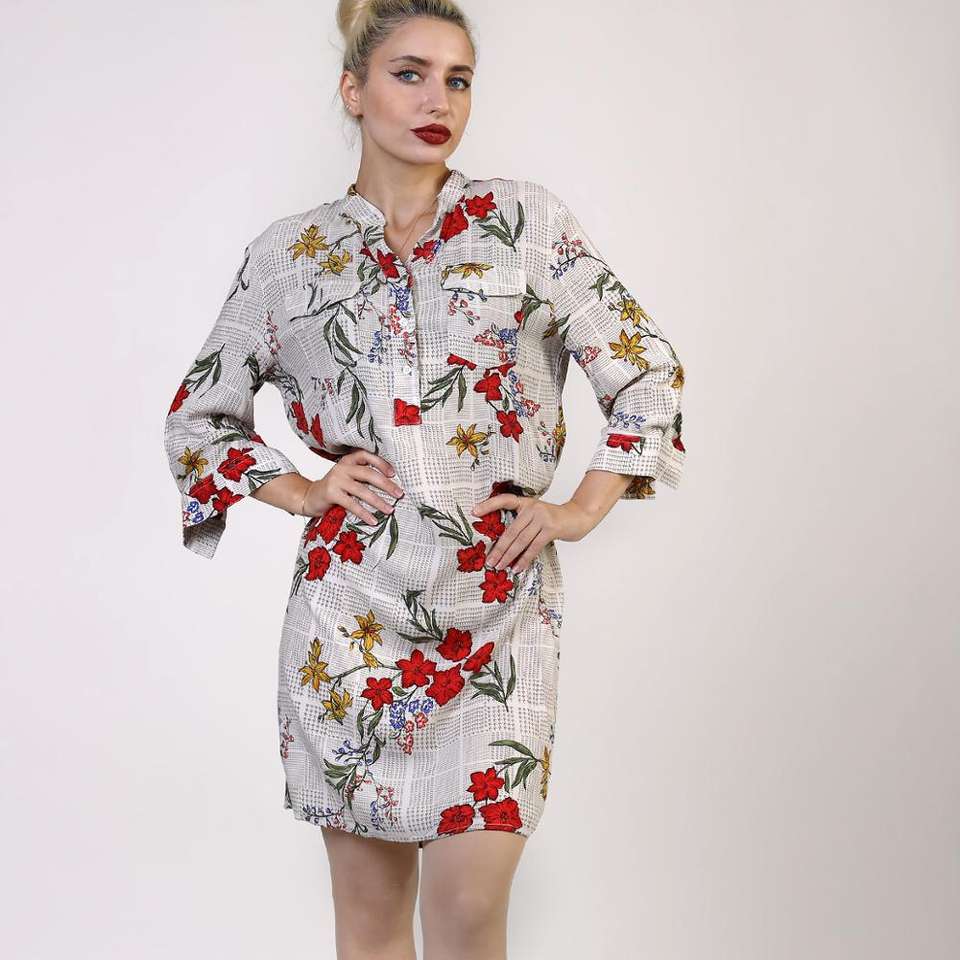Style:red flowered shirt dress