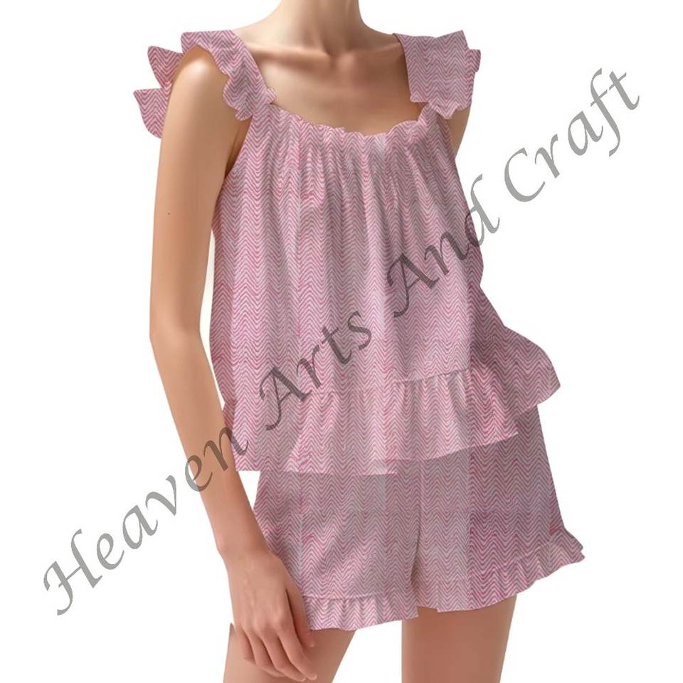 Product name:100% Cotton Printed Ruffle Pajama Set