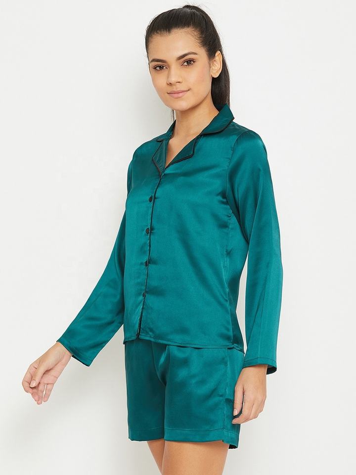 Pyjama brodé en Satin de soie pour femme, ensemble de nuit à manches longues, 7 pièces