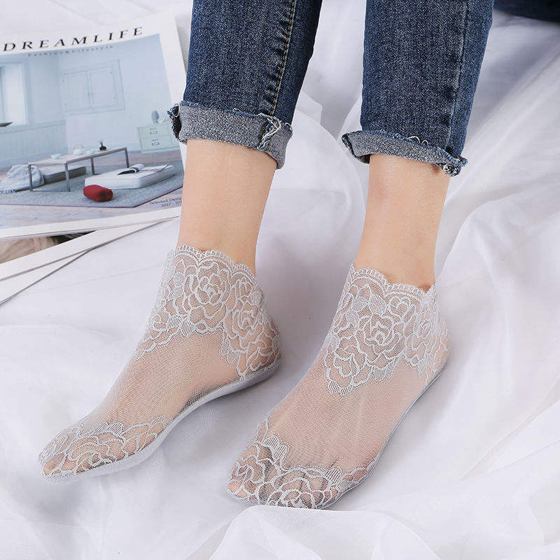 Femmes Chaussettes Dentelle Coupe Basse Printemps Eté Mince Bas Dentelle Rose Soie Bas Invisible Cheville Chaussettes