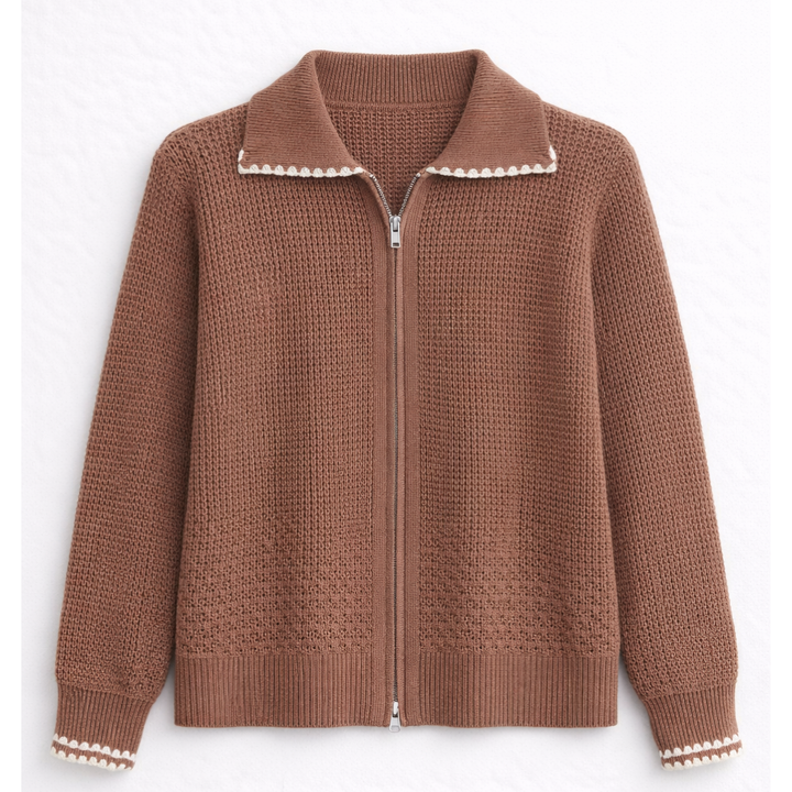 Cardigan décontracté pour femme en maille douce à fermeture éclair, motif gaufré, bord festonné, manches longues, idéal pour le quotidien