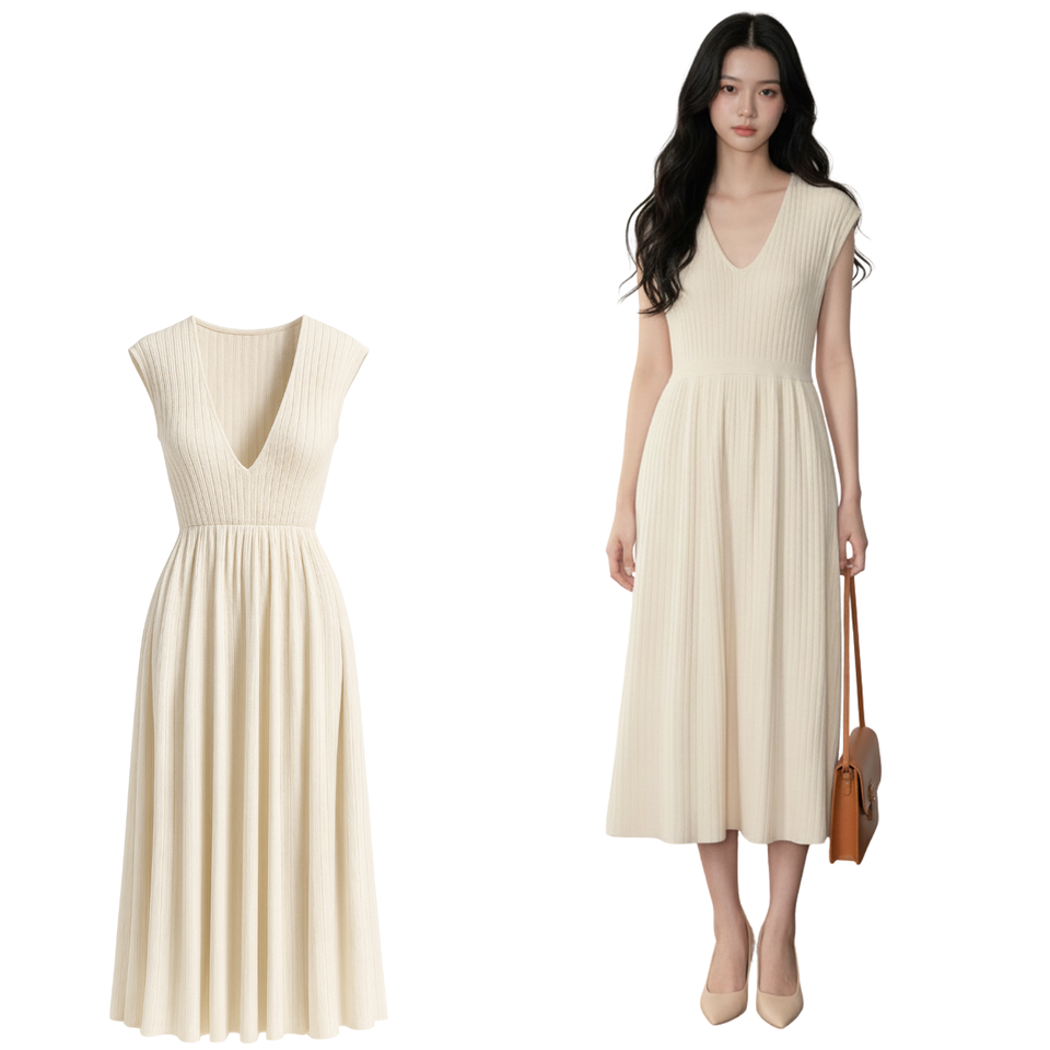 Numéro de Type:V-NECK KNIT MIDI DRESS