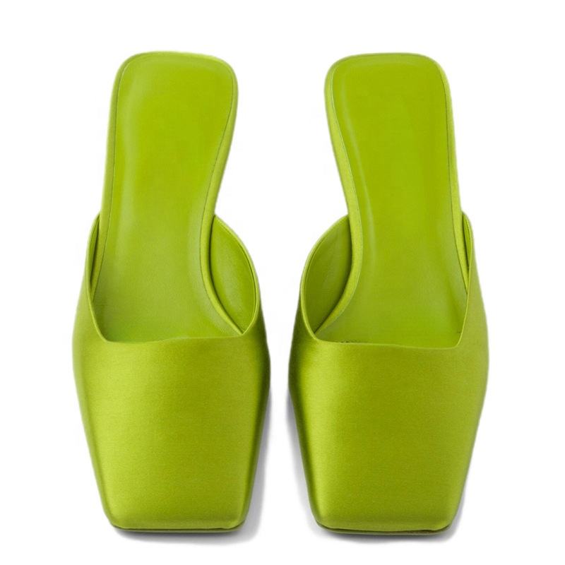 Chaussons en soie douce pour femmes, talons bas triangulaires, style français, sandales à bout carré, couleurs personnalisées, chaussures élégantes d'été