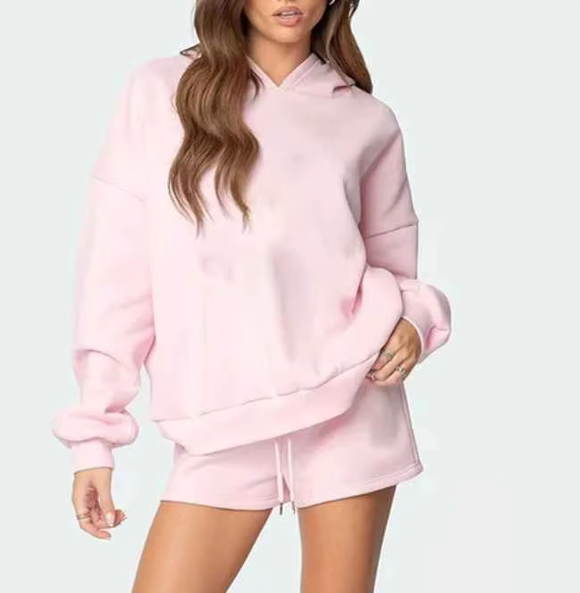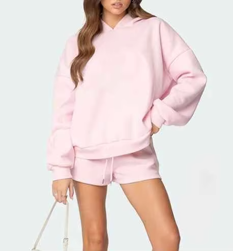 Women Solid Above Knee Hoodie and Shorts Set Regular Fit Casual Summer for Wear Everyday Fashion 100% Cotton