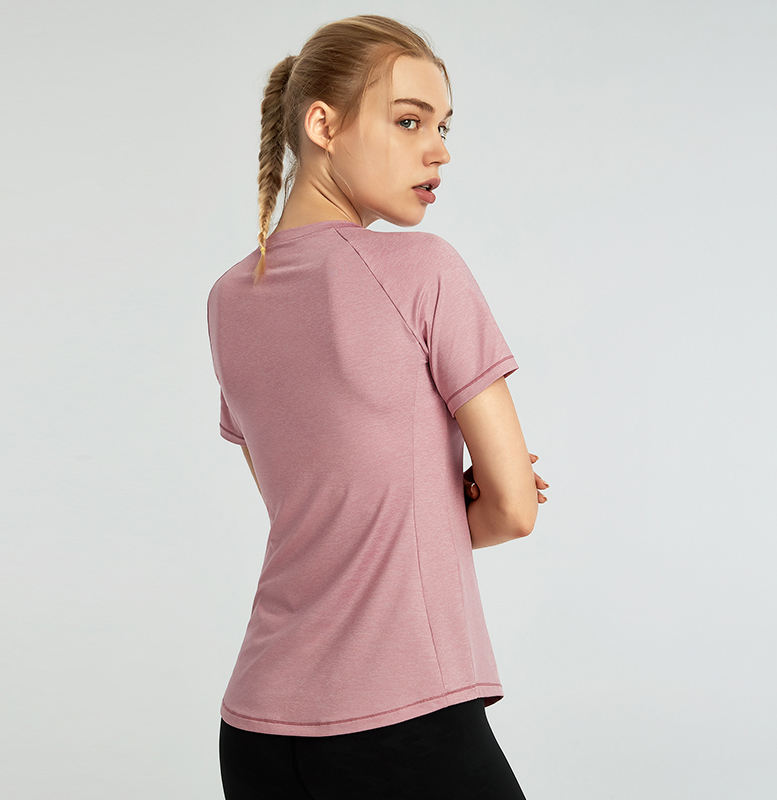 T-shirt à manches courtes de couleur unie pour femmes Fitness Cotton Breathable Shirt Yoga Wear for Yoga Gym and Sport