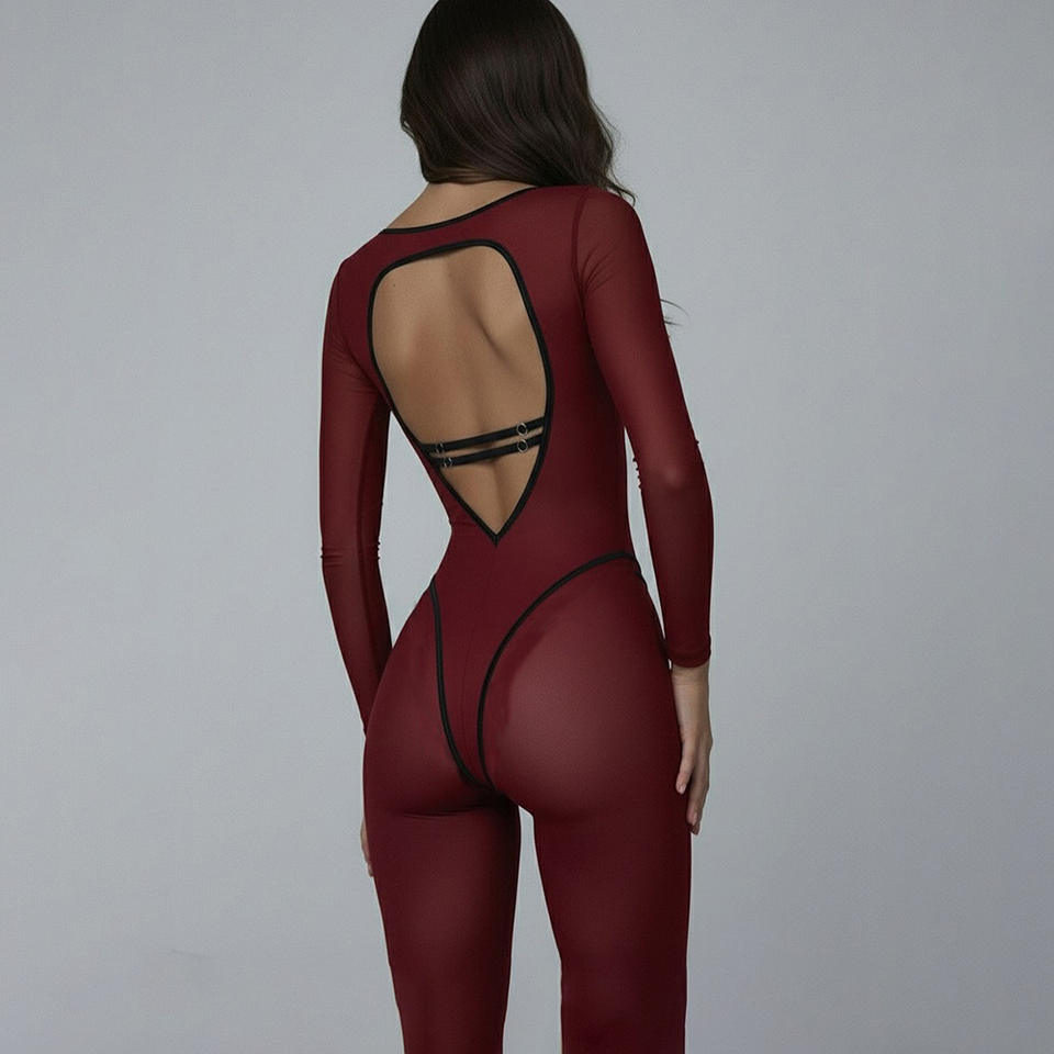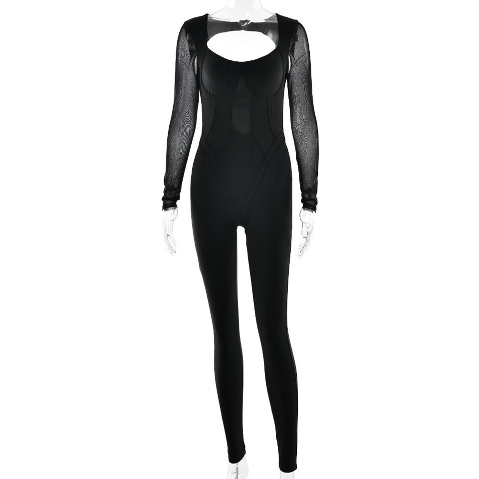 Combinaison de sport pour femmes, couleur unie, col carré, haute élasticité, manches longues, style yoga, coupe ajustée, polyester FDC1785