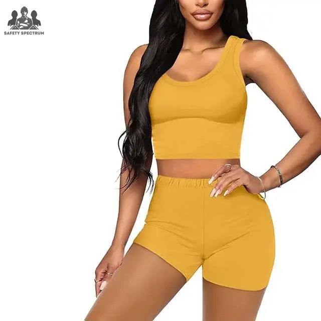 Ensemble de shorts et soutien-gorge de sport pour femmes, couleur unie | Ensemble de vêtements de sport respirants et à séchage rapide en 2 pièces avec taille élastique | Spandex/Nylon Écologique