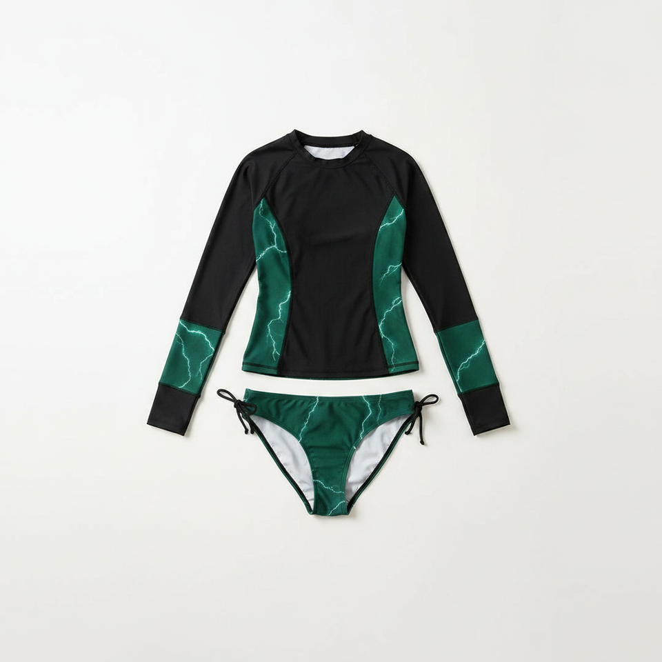 Ensemble Rash Guard extensible pour femme, haut à manches longues et bas de bikini assorti pour le volley-ball de plage