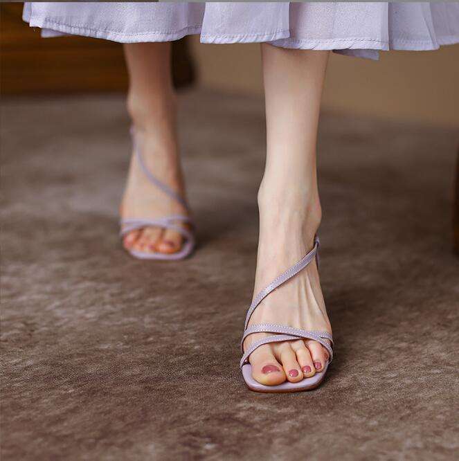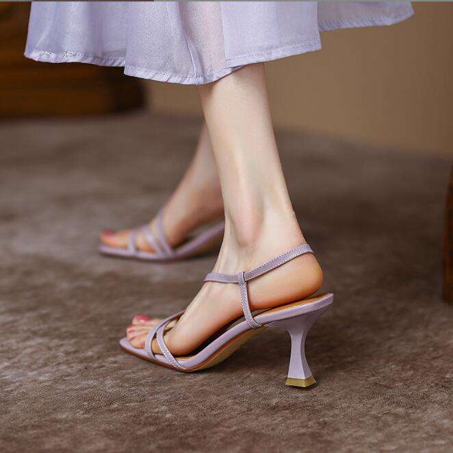 Sandales à talons hauts pour femmes, été, nouvelle collection, hautes, légères, à bout ouvert, noires, avec strass blancs