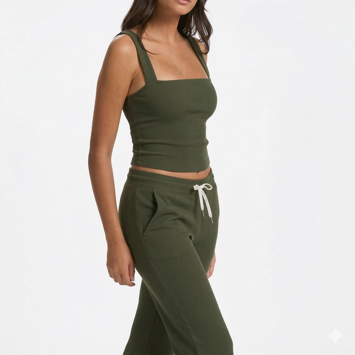 Ensembles de sport 2 pièces pour femmes, tricotés côtelés respirants, comprenant un short legging taille haute et un débardeur court, pour la gym
