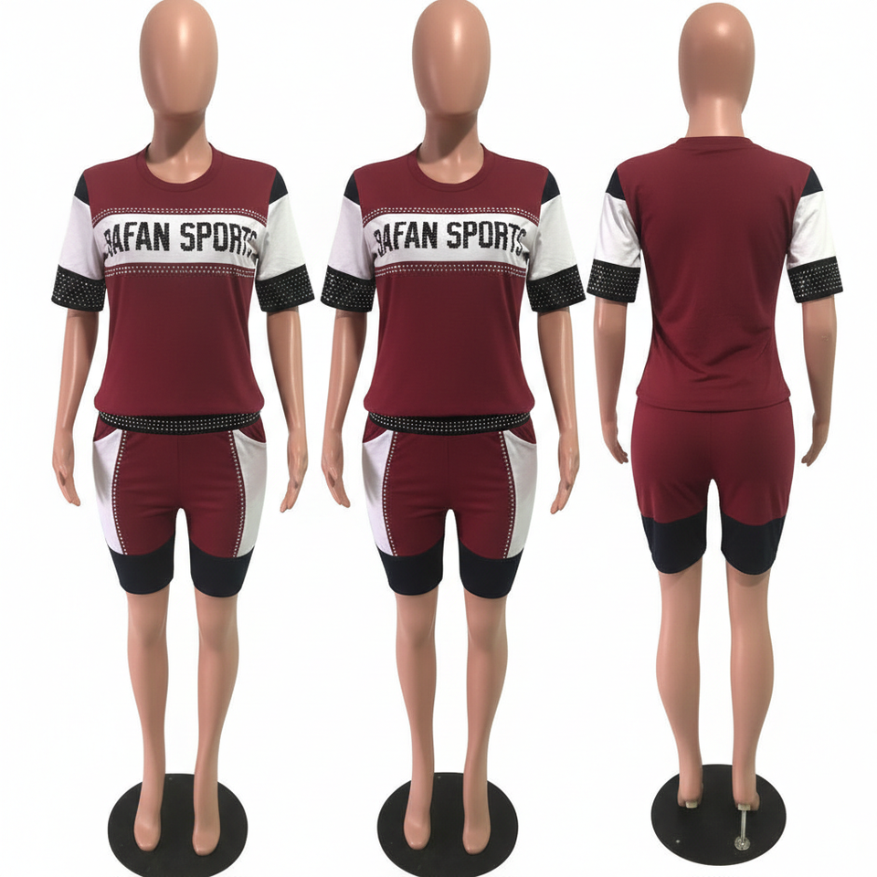 Ensemble T-shirt et short pour femme en polyester et élasthanne avec impression sérigraphiée, logo personnalisé, T-shirt 100% coton, ensemble short et shorty