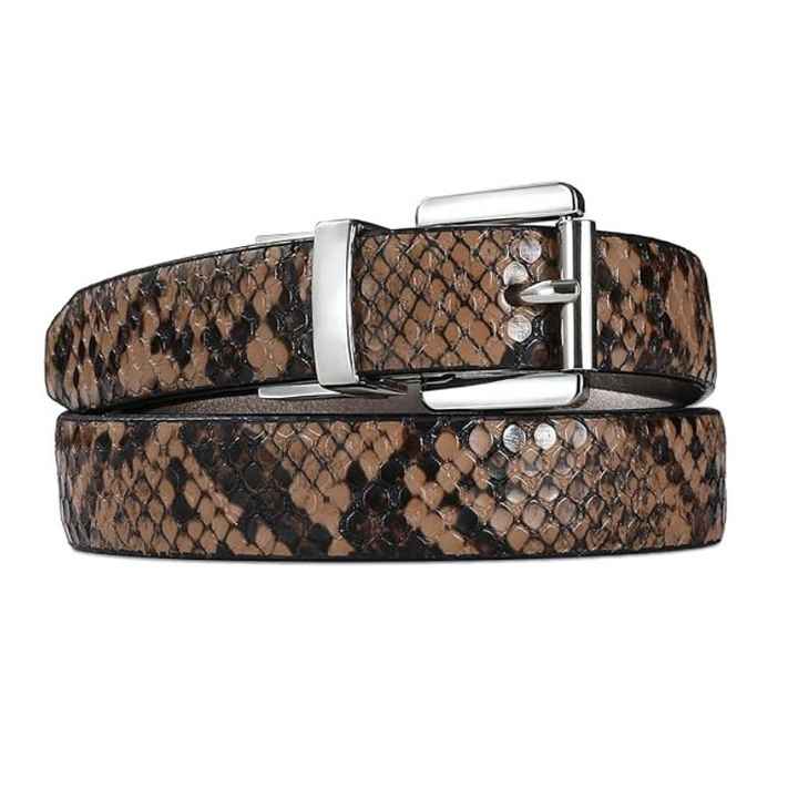 Women Thin Leather Snakeskin Belt Reversible Belt Sliver Square Rotate Buckle Leather Waist Belt for Jeans Dress