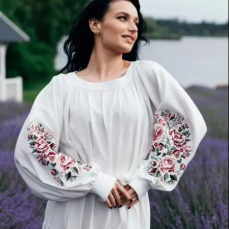 Women Ukrainian Cotton Summer Maxi Dress With Embroidery Full Sleeve Dress Beach Embroidery Work round neck Dress for Women