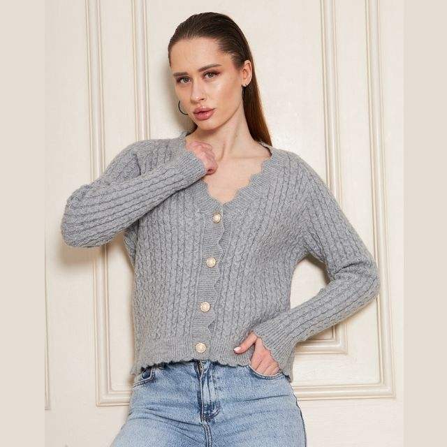 Cardigan en tricot doux à col en V pour femme avec boutons perlés, pull chaud et respirant à motifs, tricot élégant, services ODM, OEM