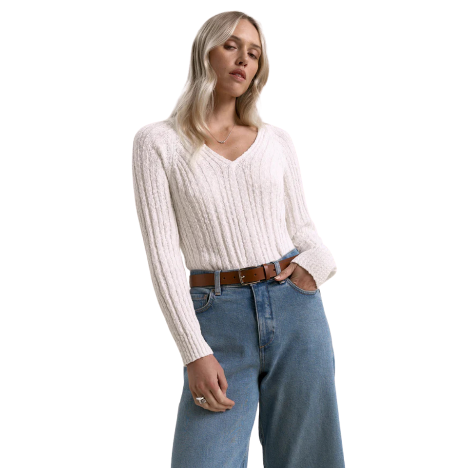 Pull en tricot côtelé à col en V pour femme, manches longues, doux et léger, décontracté, élégant, mode automne-hiver