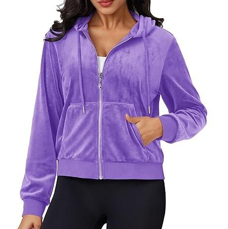 Custom Zipper-up Velour Velvet Hoodies OEM