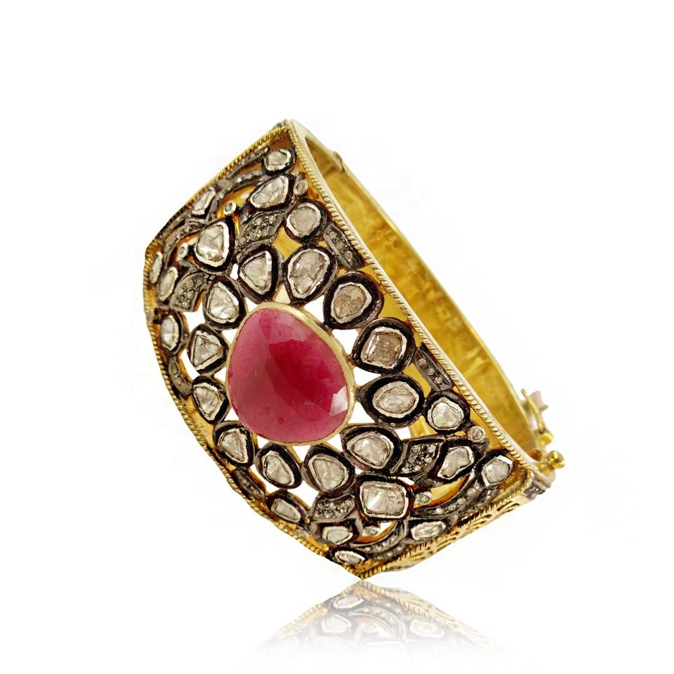 Bangle Name:Gold Diamond Gemstone Bangle