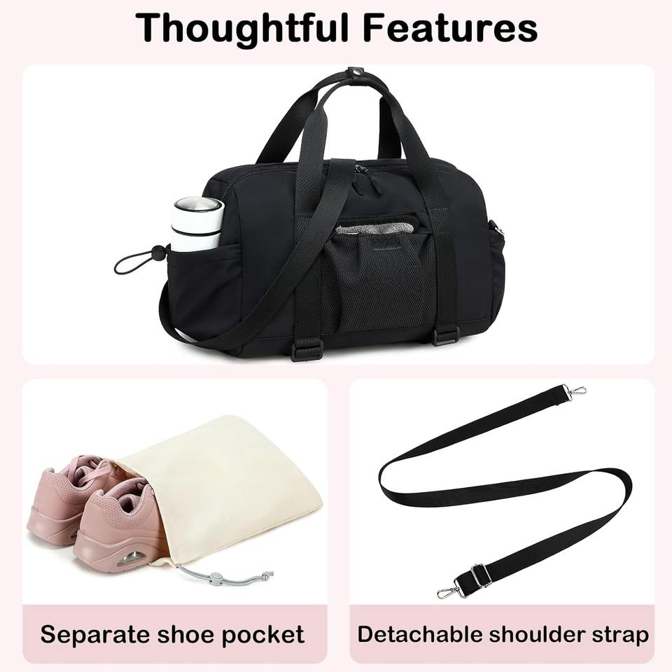 Sac de sport de grande capacité en nylon imperméable pour femmes avec compartiment à chaussures, logo personnalisé, sac de voyage pour la nuit et le week-end