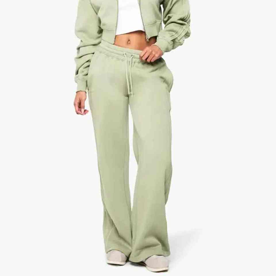 Women Winter Wide Leg Trouser Polyester/Cotton Lace Breathable Customised Logo Printing Solid Sweatpants Casual Wear OEM