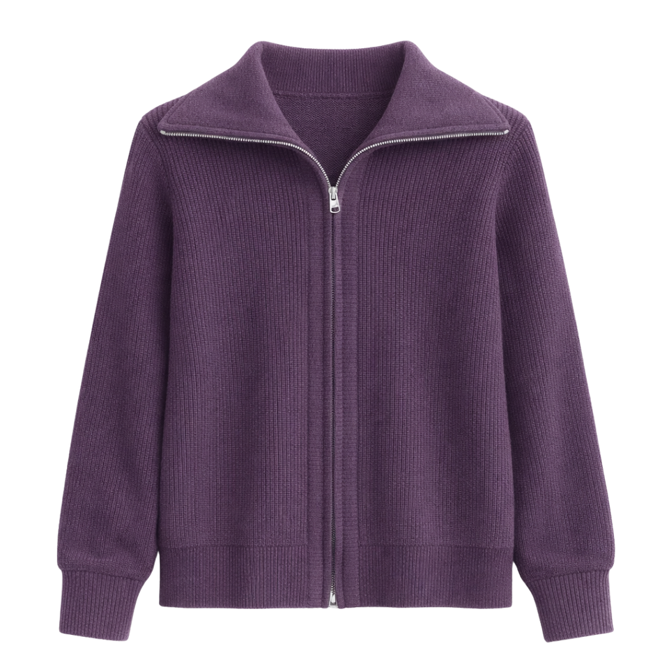 Veste en tricot zippée pour femme, texture côtelée douce, manches longues, col, style décontracté, légère, pour un usage quotidien