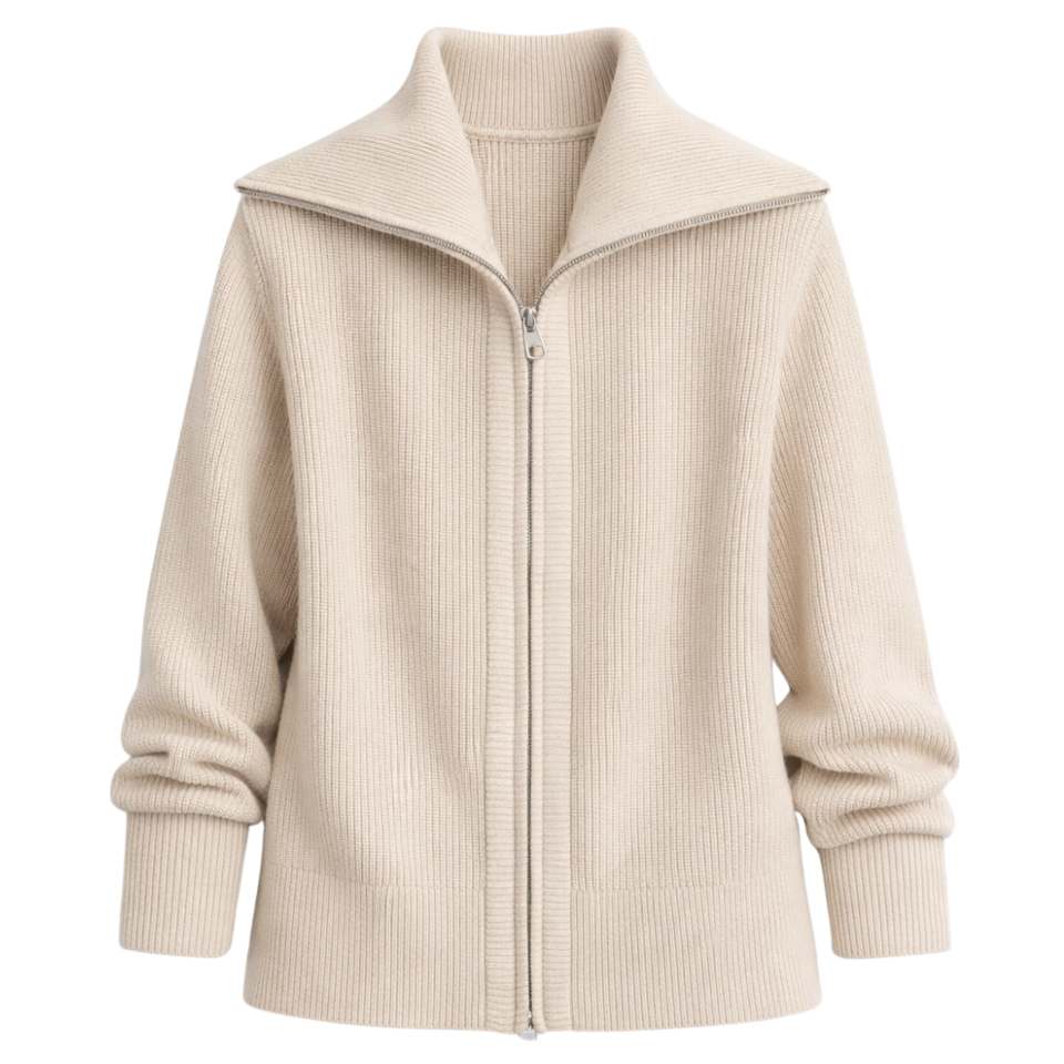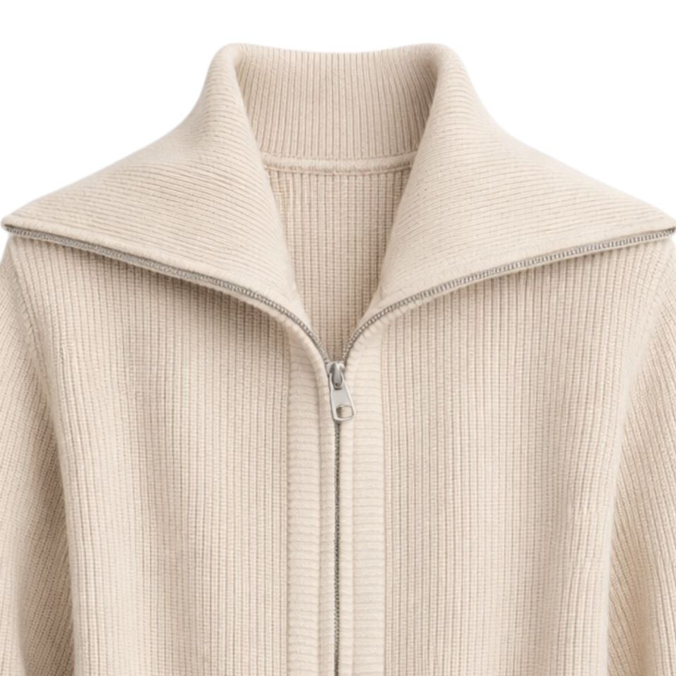 Veste en tricot zippée pour femme, texture côtelée douce, manches longues, col large, vêtement d'extérieur léger et décontracté pour tous les jours