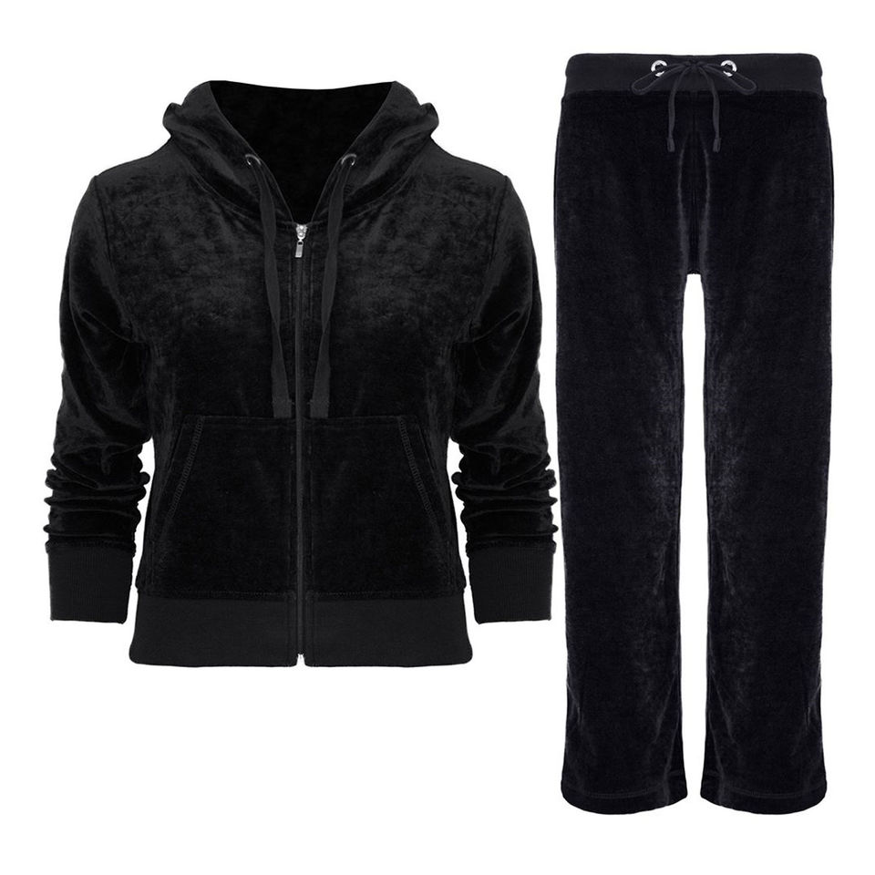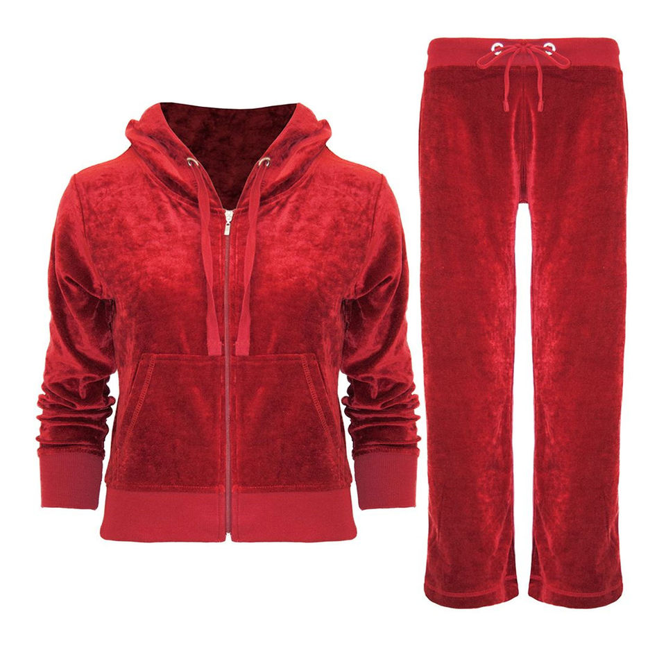 Women Winter Solid Zipper Hoodie Velvet Velour Custom Two Piece Casual Streetwear Tracksuit Sweat Suit Set