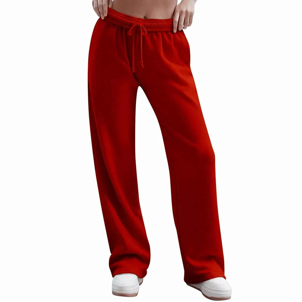 Women's Cozy Straight Fleece-Lined Sweatpants with Lace Flat Front Elastic Waist-Soft Warm Winter Lounge Casual Wear