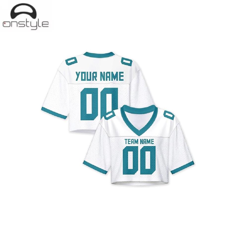 Women crop football jerseys custom sublimation breathable lightweight quick dry fabric crop jerseys for practice school team