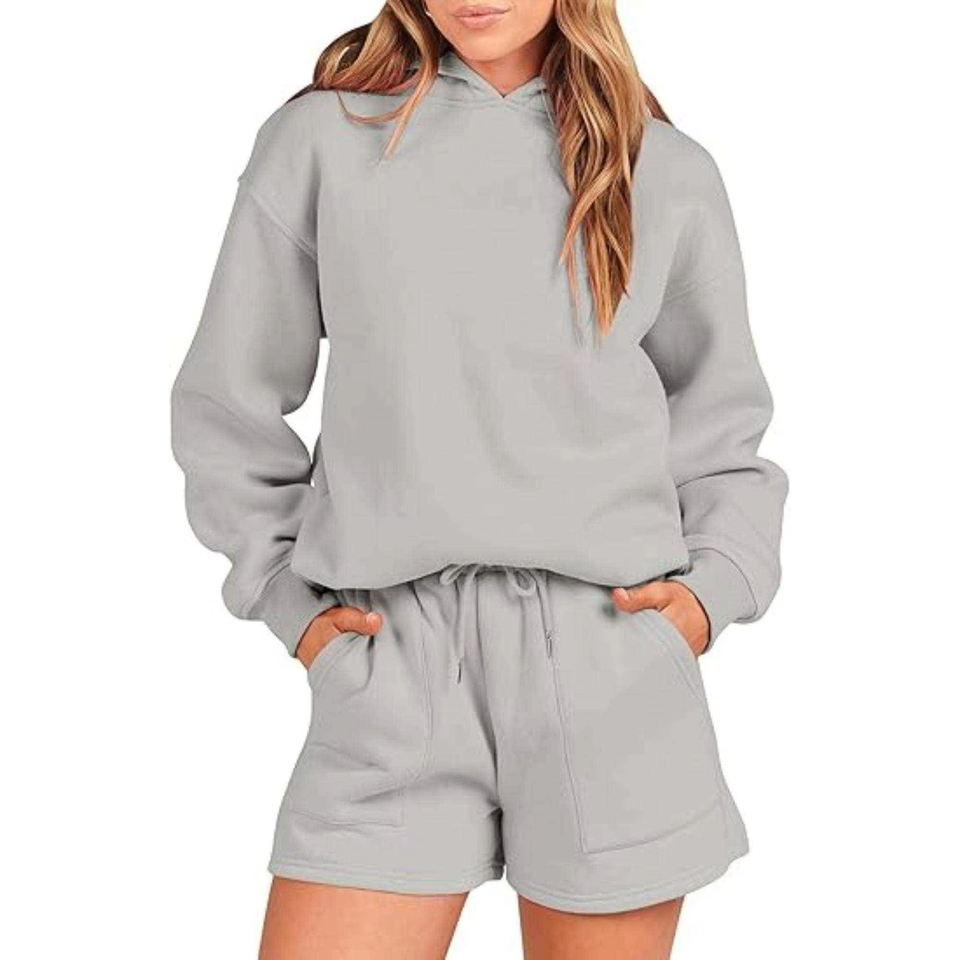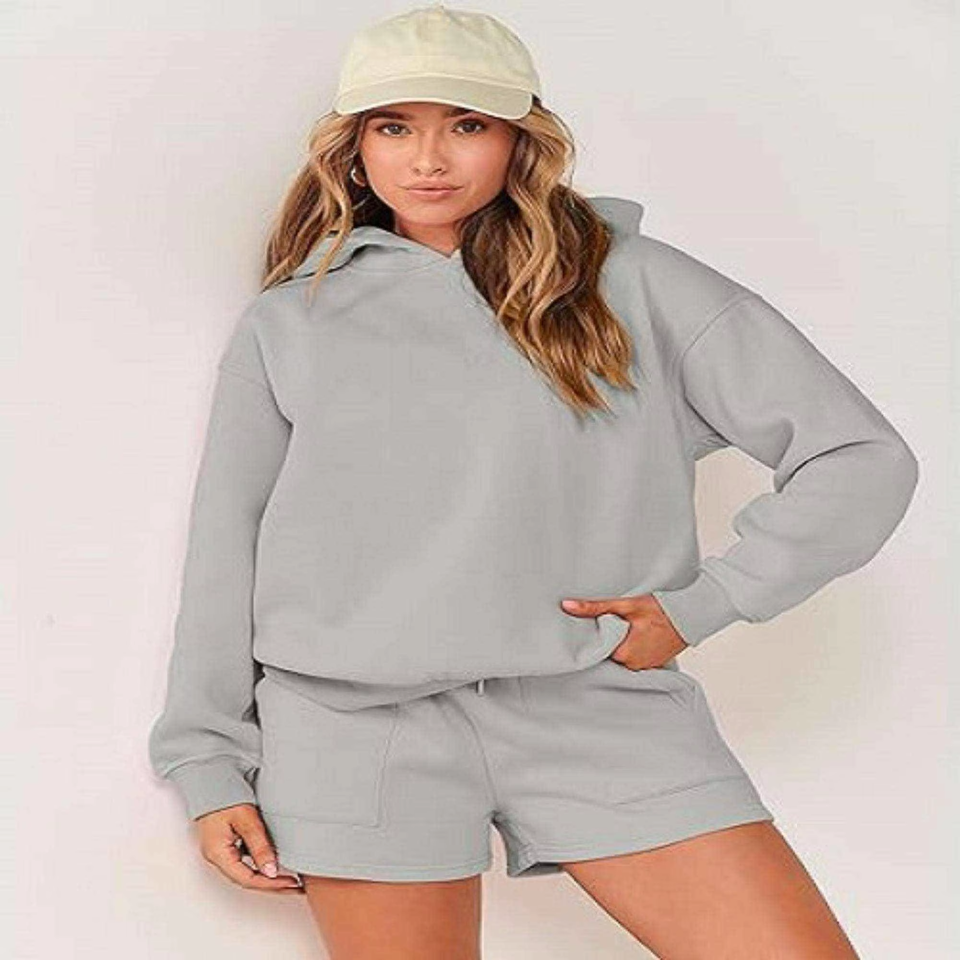 Women Solid Above Knee Hoodie and Shorts Matching Set Breathable Lightweight Fabric Soft Touch Relaxed Casual Summer Outfit