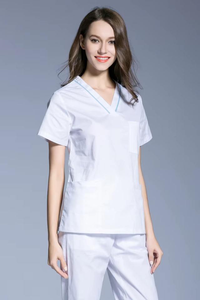 Scrub Unisex Spandex/Polyester Twill Short Sleeve Dental Clinic Medical Uniforms V Neck White Dentist Working Wear Nursing